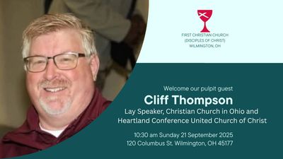 Our Pulpit Guest on September 21st will be Cliff Thompson. Cliff is an active member of First Christian Church (Disciples of Christ) in Middletown, Ohio, where he has served in various capacities, including Elder, Deacon, Property Chair, Pastoral Search Committee Chair, and Wills, Gifts, and Memorials Chair, among others.